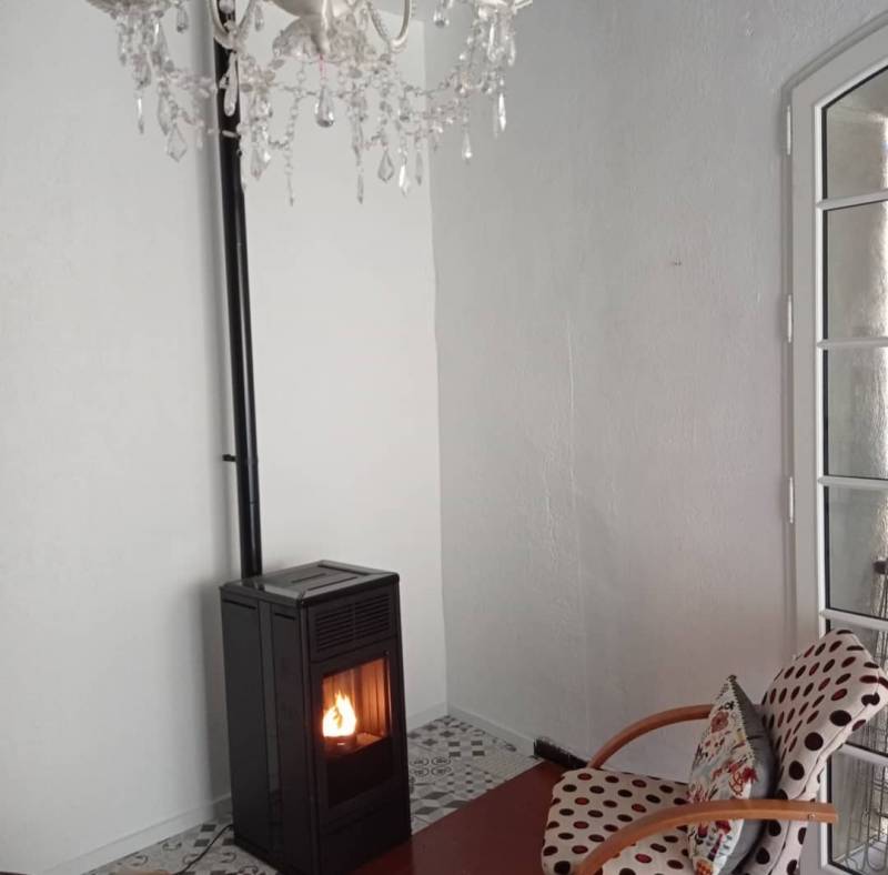 Sa forme rectangulaire et son petit conduit de fumée procure et diffuse dans cette petite pièce de vie une chaleur durable. Les poêles à bois diffusent beaucoup de chaleur et procure une ambiance cosy.